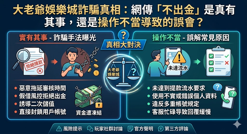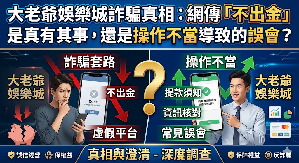 在台灣博弈市場中,大老爺娛樂城長期以來佔據極高的討論度。然而,隨著品牌知名度提升,網路上關於「大老爺娛樂城詐騙」的傳聞也層出不窮。許多新手玩家在加入前,最擔心的莫過於「贏錢能不能拿回來」以及「平台是否合法」等核心問題。作為一名資深玩家,我將從中立、專業的視角出發,深度剖析大老爺娛樂城的營運現況,並針對不出金的誤會進行澄清,幫助讀者建立正確的線上博弈認知。